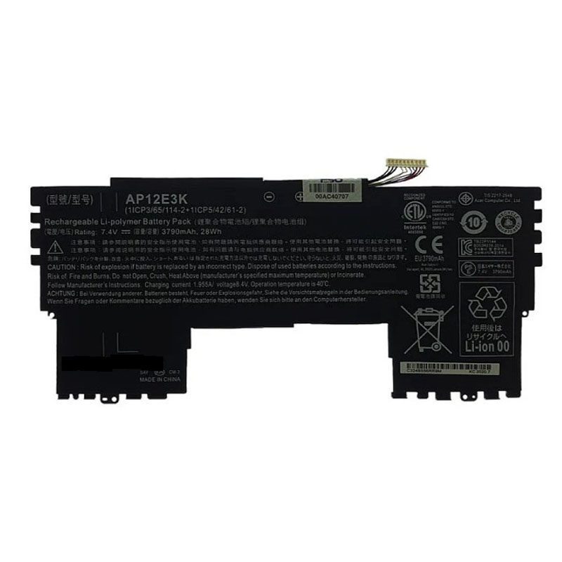 برای معرفی باتری لپ تاپ ایسر Aspire S7-191_AP12E3K باید گفت این باتری با شماره قطعه AP12E3K با ولتاژ خروجی 7.4 ولت است. این باتری دارای ویژگی هایی از قبیل ظرفیت 3790 میلی آمپر ساعت، توان خروجی 28WH و ولتاژ خروجی 7.4 ولت می باشد. این باتری با بالاترین کیفیت و تشابه به باتری اصلی لپ تاپ شما ساخته شده است. بعضی ویژگی های خاص این باطری در زیر لیست شده است. اگر باتري لپتاپ شما زياد داغ ميکند، اگر شارژ نگه نميدارد و مدام براي عوض کردن باتري پيام ميدهد، اگر شارژ نميشود و لپتاپتان را با برق شارژر روشن نگهداشتهايد، وقت خريدن يک باتري لبتاب است. بعضی شرایط مانند: شارژ کردن بیش از حد باتری، شارژ کردن باتری برای مدت زمان طولانی، استفاده نامناسب از دستگاه، استفاده از شارژرهای غیر استاندارد و … از جمله مواردی هستند که باعث خرابی باتری لپ تاپ می شوند.