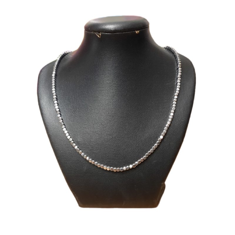 هر دو شکل به کار رفته در این گردنبند از جنس سنگ طبیعی حدید یا همان (هماتیت) می باشد جالب است بدانید که حدید به نام سنگ خون شناخته میشود. همچنین آن را به نام سنگ ذهن نیز نامگذاری میکنند. این سنگ در فرد آرامش و تمرکز ذهنی به وجود میآورد. به تفکر اخلاق، تفکر منطقی و ریاضیات کمک زیادی میکند