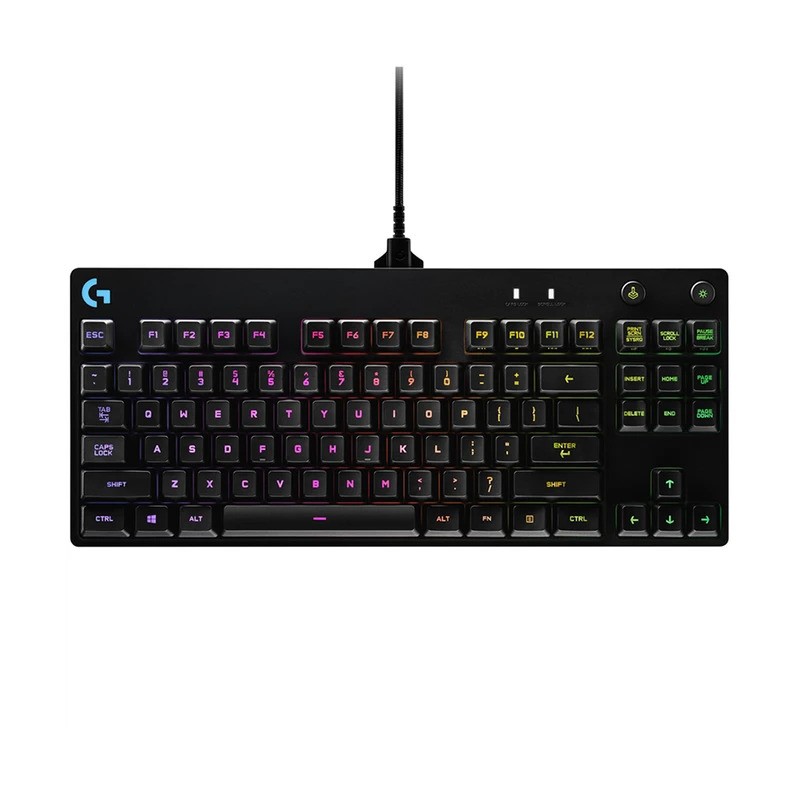 کیبورد مخصوص بازی لاجیتک مدلLogitech G Pro: کیبورد مخصوص بازی «G Pro» شرکت «لاجیتک» (Logitech) کیبوردی مکانیکی و از محصولات موردپسند گیمرهاست. طرفداران بازیهای رایانهای همواره به دنبال تهیه بهترین محصولات برای داشتن تجربهای متفاوت از انجام بازیهای رایانهای هستند. قوت این کیبورد در نورپردازی دقیق و زیبای کلیدهای آن است. شما میتوانید برای تکتک کلیدهای کیبورد، یک نور پسزمینهی خاص تعریف کنید تا هم پیداکردن کلیدها به پروسهی راحتتر و سریعتری تبدیل شود و هم کیبوردتان ظاهر جذابتری به خود بگیرد. حق انتخابی که برای تعیین رنگ پسزمینهی کلیدها در اختیار دارید، به گستردگی 16 میلیون رنگ است. این کیبورد با ویندوز (Windows) نسخههای 7،8 و 10 کاملاً سازگار است و بابت ناهماهنگی سختافزار و سیستمعامل مشکلی را تجربه نخواهید کرد. G Pro یک محصول با کیفیت ساخت بالاست که انجام هر نوع بازی با وجود چنین کیبوردی دلچسبتر میشود. این محصول از طریق کابل USB به کامپیوتر شما متصل شده و برق مورد نیاز خود را از همین طریق دریافت میکند.