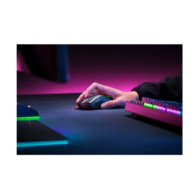 ماوس مخصوص بازی ریزر مدل Razer DeathAdder V2 Pro :شرکت رزیر ماوس های زیادی مخصوص بازی تولید می کند ولی سری DeathAdder محبوب ترین و پرفروشترین ماوس های ارائه شده توسط این شرکت می باشند. ماوس DeathAdder V2 Pro با طراحی جذاب از تکنولوژی بیسیم HyperSpeed بهره میبرد. این ماوس ارزانترین محصول جدید شرکت ریزر به حساب می آید که از گیرنده « HyperSpeed 2.4GHz » سازنده خود و همچنین بلوتوث پشتیبانی میکند. کاربران می توانند در صورتی که برای اتصال Razer DeathAdder V2 Pro به سیستم خود از بلوتوث استفاده کنند تا 120 ساعت و در صورت استفاده از وای فای تا 70 ساعت به وسیله تکنولوژی HyperSpeed که از کمترین میزان تاخیر در ارسال و دریافت دادهها برخوردار است ، به صورت بیسیم از ماوس خود استفاده نمایند. همچنین در صورت تمام شدن شارژ باتری ، کاربران میتوانند با استفاده از کابل ، همزمان با شارژ کردن ماوس ، از آن استفاده کنند. برای شارژ Razer DeathAdder V2 Pro میتوان از پورت Micro USB استفاده کرد یا اقدام به خرید یکی از داکهای ماوس 50 دلاری ریزر کرد. این ماوس دارای وزن 88 گرمی است و فقط 6 گرم از مدل سیمی خود ، وزن بیشتری دارد. از سایر ویژگی های این محصول می توان به سنسور اپتیکال « Focus Plus » و سوییچهای اپتیکال با عمر 70 میلیون بار کلیک اشاره کرد.Razer DeathAdder V2 Pro دارای 8 دکمه قابل برنامه ریزی است که به طور کامل از طریق Razer Synapse 3 قابل تنظیم هستند و به شما امکان دسترسی به ماکرو و توابع ثانویه را میدهد تا دستورات دلخواهتان به راحتی و با نوک انگشتتان در دسترس باشند.جنس پدهای زیر موس از جنس PTFE(پلی تترافلوئورواتیلن یا همان تفلون) ساخته شده که امکان حرکت نرم و روان آن را بر روی هر سطحی ممکن میکند. (مادهای که به عنوان پوشش در تابههای نچسب هم استفاده میشود)حداکثر 5 تنظیم نمایه را در حافظه داخلی ذخیره کنید و تنظیمات دلخواه خود را در هر کجا به سرعت اعمال کنید – بنابراین همیشه آماده رقابت با تنظیمات و کنترلهای ترجیحی خود هستید.سنسور جدید و بهبود یافته Razer DeathAdder V2 Pro با دقت 20.000 DPI و دقت تفکیک 99.6٪ و امکاناتی مانند ردیابی هوشمند، قطع نامتقارن و همگام سازی حرکت برای بهترین عملکرد، بهینه شده.