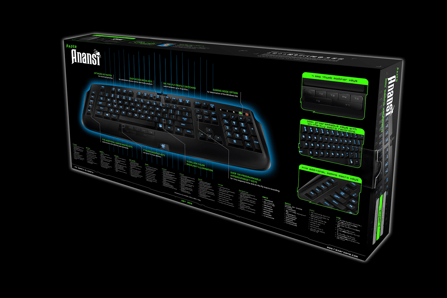 کیبورد ریزر مدل Razer Anansi یکی از کیبوردهای مخصوص بازی کمپانی ریزر است که دارای ۷ کلید اختصاصی و قابل برنامهریزی است که دقیقا زیر انگشت شصت قرار میگیرند و با استفاده از آنها میتوان جادوها یا تواناییها را سریعتر استفاده کرد. همچنین وجود حالت اختصاصی بازی، نور پسزمینه ابیرنگ و ۵ کلید ماکور از دیگر ویژگیهای این کیبورد هستند.کلیدهای کاملا قابل برنامه ریزی در کیبورد Anansi این امکان را می دهد تا دستورات مایکروی حرفه ای که شانس پیروزی در باس فایت های دشوار را فراهم می کنند را گسترش دهید، با کنترل راحت، کامل و سریع. همچنین تنها با یک دکمه می توان بین 20 پروفایل مختلف برای هر بازی سوئیچ نمود.Razer Synapse 2.0 یک نرم افزار پیشرو، مستقیم و اختصاصی است که مانند مغز Anansi عمل می کند. می تواند بطور خودکار کیبورد را به سیستم اَبری متصل نموده و آپدیت های جدید و درایورهای لازم را دانلود و نصب نماید. همچنین تنظیماتی که اعمال می کنید را ذخیره می کند بدون اینکه نیاز باشد حتی انگشتتان را تکان دهید.