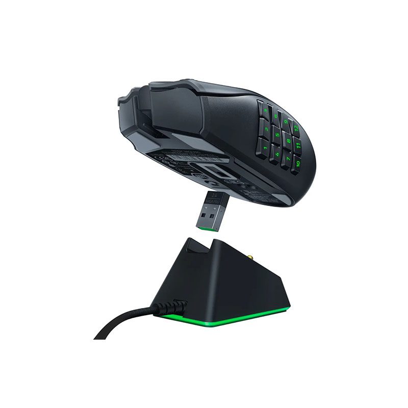 این تکنولوژی 25 درصد سریعتر از بهترین تکنولوژیهای اتصال بیسیم در دنیا است و عملکرد موسسه پنل جانبی موس Razer Naga Pro به راحتی جدا شده و به صورت مغناطیسی به این موس وصل میشوند. این پنلها دارای سه مدل ۱۲، شش و دو دکمه برای بازیهای مختلف هستند. پنل ۱۲ دکمه با افزایش کنترل و سرعت شما در بازی، برای بازیهای MMO مناسب است. پنل شش دکمه برای بازیهای بتل رویال و MOBA و پنل دو دکمه نیز که مانند موسهای متداول است برای بازیهای شوتر و سایر بازیهای تکنفره مناسب هستند. پنل ۱۲ دکمه روی سرعت، پنل دو دکمه روی کنترل و پنل شش دکمه روی هر دو تمرکز دارند.با استفاده از نرمافزار Razer Synapse و تکنولوژی Razer Hypershift، میتوانید عملکرد این موس را افزایش دهید تا هر دکمه کاربریهای بیشتری داشته باشد. این موس در مجموع دارای ۲۰ دکمه است که همگی قابل برنامهریزی هستند و تعداد زیاد دکمههای آن به هیچ وجه باعث کاهش ارگونومی و راحتی در استفاده از این موس نمیشود.