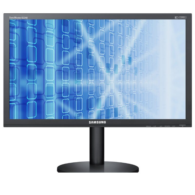 مانیتور 22 اینچ سامسونگ مدل Samsung B2240 با کیفیت LCD از کیفیت خوب برای انجام کارهای مختلف است. رنگ بدنه و قاب مشکی از جنس پلاستیک و پایه آن به رنگ مشکی است.همچنین در پایین صفحه 6 دکمه برای انجام کارهای مختلف تعبیه شده است. پورت های Samsung B2240 شامل : VGA و DVI-D مانیتور است.