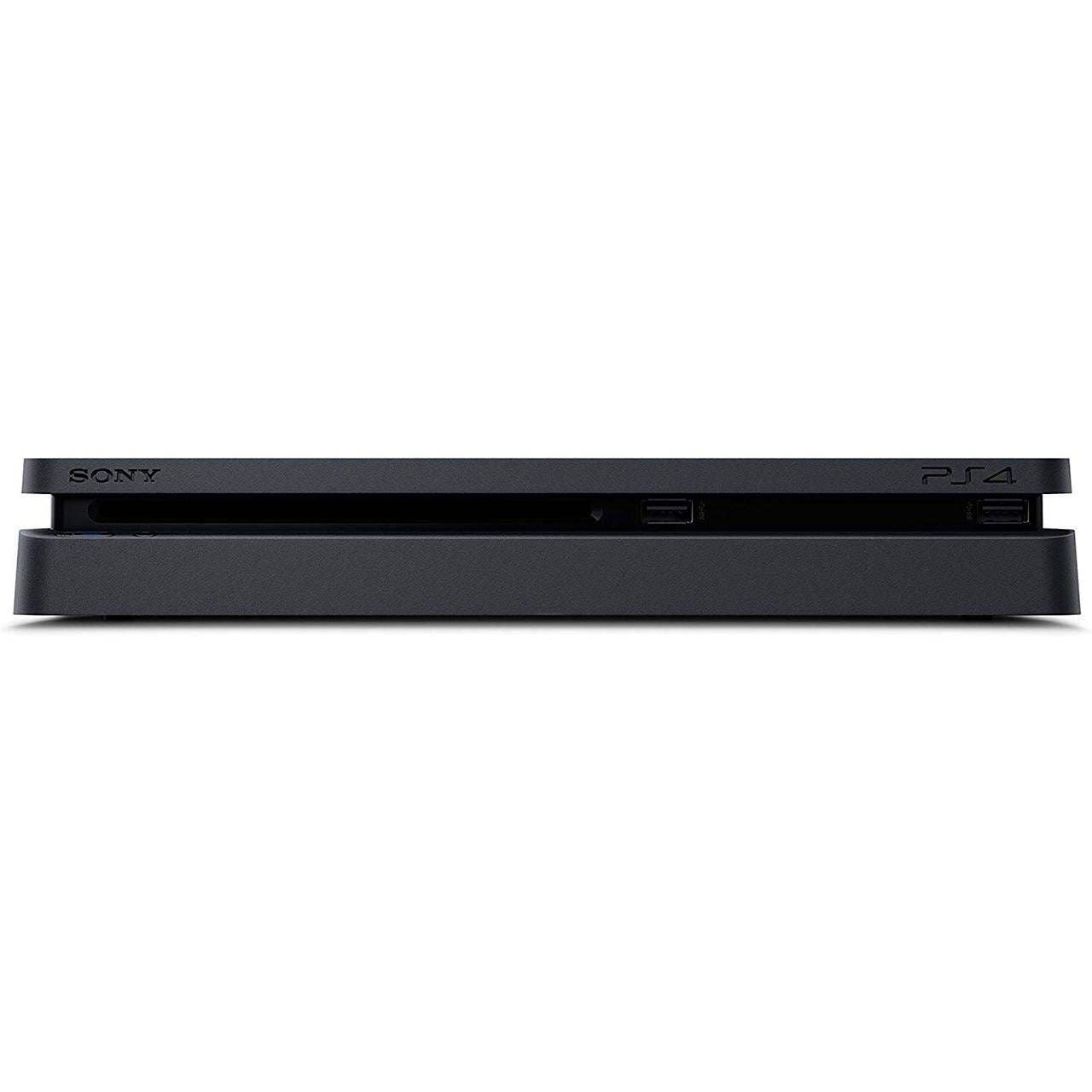 کنسول بازی PS4 Slim نمونهی کوچکتر PS4 محسوب میشود اما از عملکرد بهتری نسبت به آن برخوردار است. دکمههای پاور و اجکت بکار رفته در کنسول PS4 Slim برخلاف PS4، بصورت فیزیکی جایگزین شدهاند. در قسمت جلوی بدنهی این کنسول، درایو نوری و دو پورت USB جدا از هم و با فاصلهی زیاد تعبیه شدهاند تا کاربر بتواند به آسانی از آنها استفاده نماید. درایو نوری PS4 Slim قابلیت پشتیبانی از DVD-ROM و Blu-ray را داشته و همچنین برای نمایش تصاویر به صورت شفاف همراه با کنتراست بالا از تکنولوژی HDR بهره میبرد و همچون کنسول میان ردهی PlayStation 4 Pro، از هدست واقعیت مجازی PlayStation VR پشتیبانی میکند.دستگاه PS4 Slim نسبت به PS4 از مصرف انرژی پایین و صدای کمتری برخوردار بوده و خطوط میانی موجود روی بدنهی PS4، در PS4 Slim کاملاً حذف شدهاند. ارتفاع قسمت بالایی بدنهی Slim باریکتر از PS4 بوده و بنظر میرسد که شرکت سونی در زمان ساخت این کنسول، به باریک بودن بدنه و زیبایی آن نسبت به PS4 اهمیت زیادی داده است. تمامی پورتهای ارتباطی Slim در قسمت پشت دستگاه و در یک ردیف قرار گرفتهاند، این پورتها شامل خروجی برق، HDMI، AUX و اترنت هستند. از دیگر تفاوتهای کنسول PS4 Slim با PS4 میتوان به عدم پشتیبانی از رزولوشن 4K و حذف خروجی صدای اپتیکال نیز اشاره نمود؛ همچنین برخلاف PS4 که دارای بدنهای با روکش مات و براق بود، بدنهی PS4 Slim تماماً مات مشکی است.